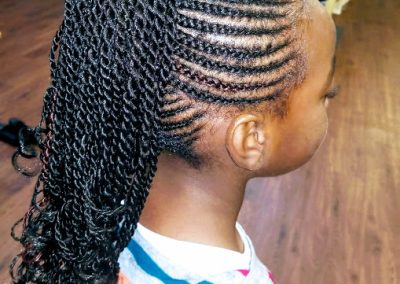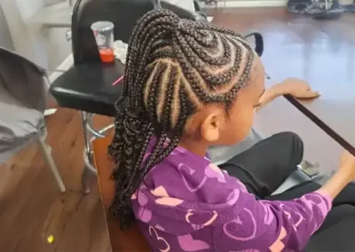 Our braiders are skilled in working with natural textures and all types of hair. Whether your child has tight coils, soft curls, or straight strands, we’ll tailor the braiding technique to suit their needs.
